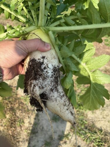 今年のダイコン植える時期が昨年より遅かったせいと少雨で小さいです。
