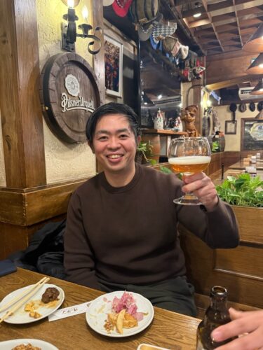 「GO TO JOBで熊 」です。崇城大学の薬学部学生の企業案内を終わらせた後、伊○先生と独立した○本君とオーデンで合流しました。ここのアイスバイン最高です