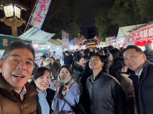 1月8日十日恵比寿神社にお参りに行きました。参拝の後福引をして「えびす銭」を交換して、出店で宴会です。今年も頑張らないとと気合入ります