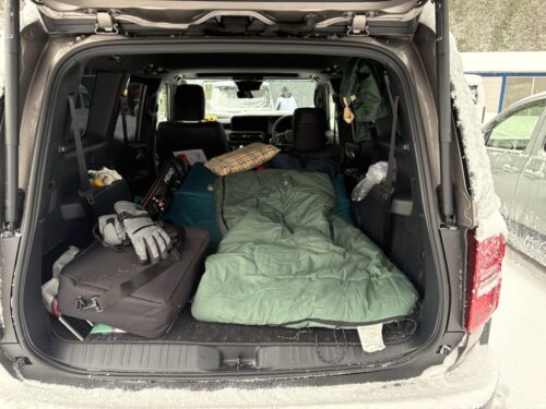 1月11日 1人で瑞穂ハイランドスキーに行きました。夜に現地について久しぶりの車中泊です。最強寒波到来のアナウンスが流れていた日です。エアコン切って寝袋で就寝。あまりの寒さで早朝に目覚めました