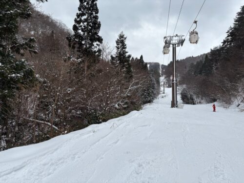 ゴンドラの下のコース2・8kmをエンドレスで滑走。15㎝位の新雪がありました。13時以降はコースの下側のアイスバーンが露出