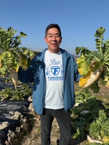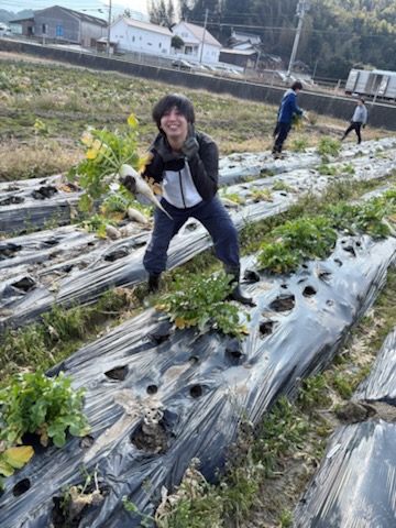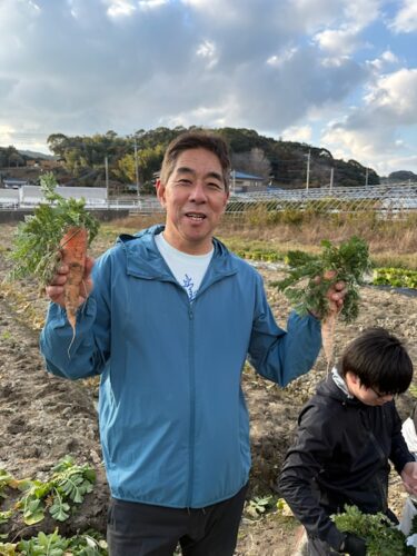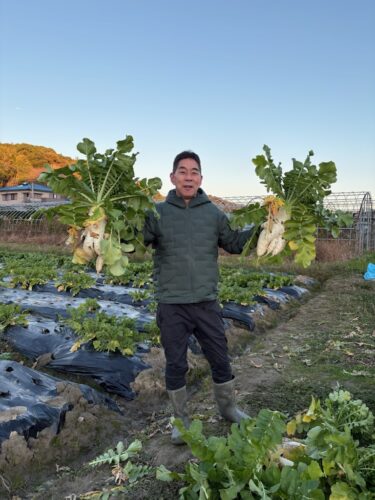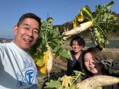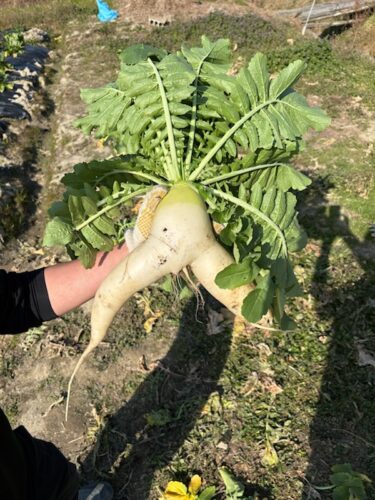 日曜日の昼下がり糸島で畑仕事です。ダイコンの収穫です