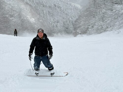 久しぶりスノボーする○村先生。GOOD!な滑りです