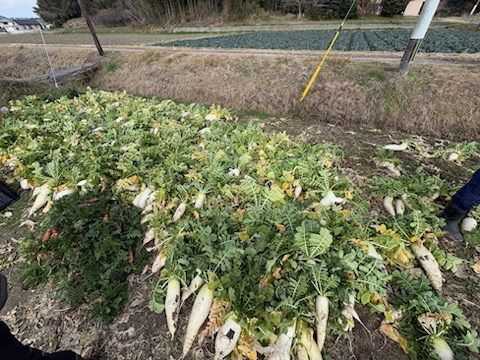 2月11日冬野菜の最後の収穫日です。「大根」がまだまだ大量に収穫できました